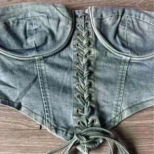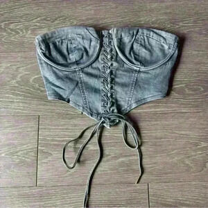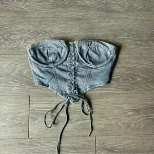 Fashion Nova Play It Your Way Denim corset Top NWT Large T10124FN