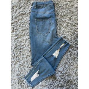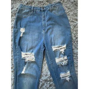 Fashion Nova Plus Size Womens Petite Ripped Blue Jeans Size 14 High Rise