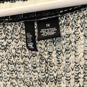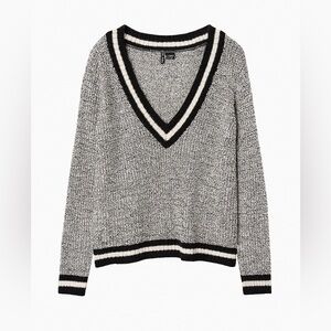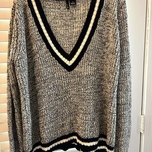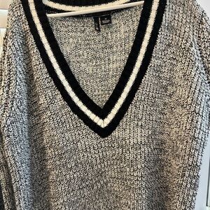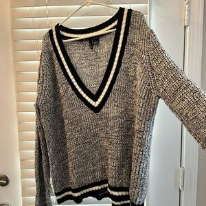 Fashion Nova V-neck sweater with a stylish black and white pattern. Ideal for layering. Very loose fitting and comfortable. Size 1X. Comes from a smoke free 🚭, pet free home 🏡.