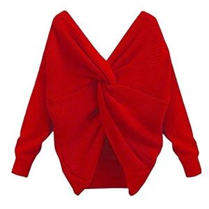 Fashion Nova Plus Twist Back Long Sleeve Pullover Sweater Size 1X in Red