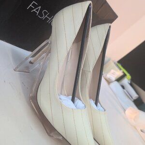 Item is new and unused .Comes in original packaging. Packaging may show signs of wear. The Fashion Nova heel is a striking and elegant shoe designed to make a statement. It features a classic pointed-toe silhouette combined with a contemporary nude and combination