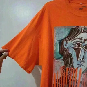 Fashion Nova Print Graphic Men's T Shirt Orange Short Sleeve Size XXL Cotton