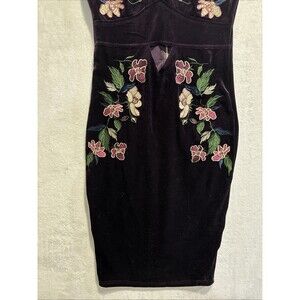 Fashion Nova Purple Velvet Mini Dress Floral Embroidery Cutout Zipper Size Small