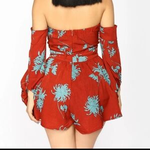 Put It In Park Floral Women's Romper in wine from Fashion Nova in Excellent condition