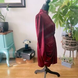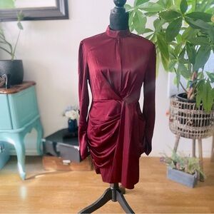 Fashion Nova Raise Your Glass Satin Drape Mini Dress in Deep Red Wine Size M