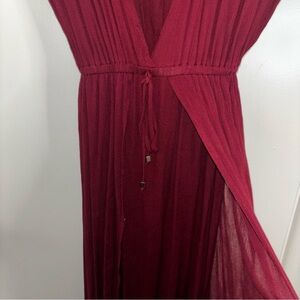 Fashion Nova Red Pleated V-Neck Maxi Dress Size Small