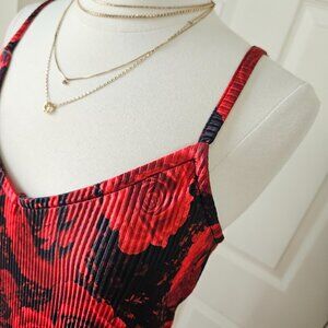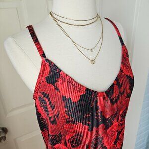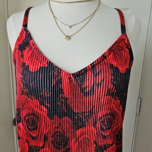 Fashion Nova Red Rose Pleated Ribbed Sleeveless Floral Bodycon Maxi Dress Large