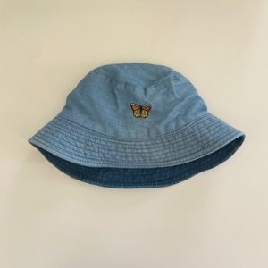 π ITEM DESCRIPTION: Trendy reversible denim bucket hat by Fashion Nova. One side features a cute butterfly design, the other a solid denim finish. Perfect for casual wear, Y2K-inspired outfits, or festival vibes. One size fits most.