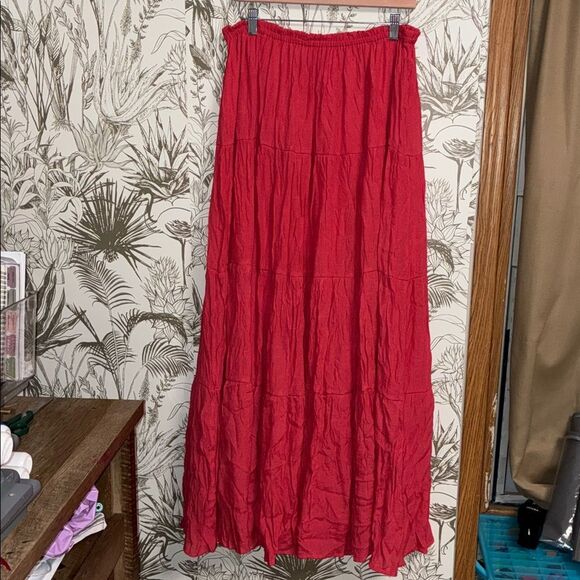 Fashion Nova S Red Cherry Tiered Long Maxi Skirt