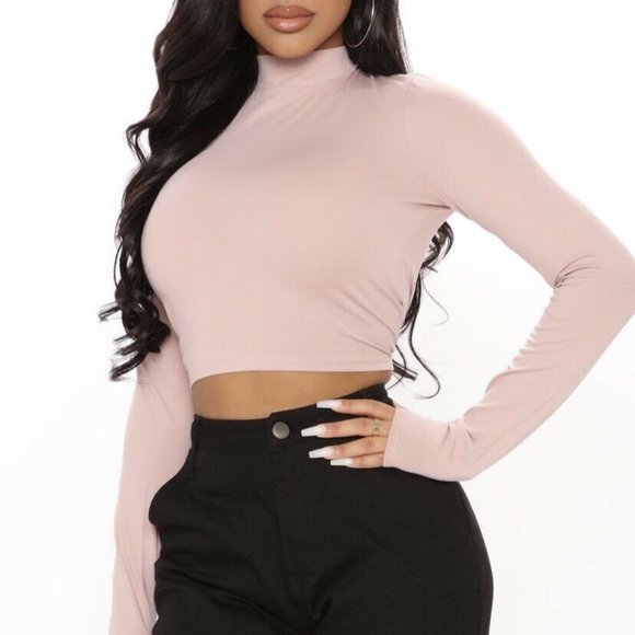 Fashion Nova SZ Large Pink Mock Neck Crop Top