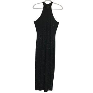 Fashion Nova Sexy Sheer Black Rhinestone Halter Neck Dress Large Bodycon Glam
