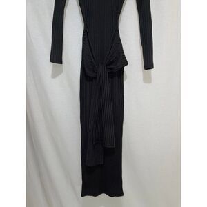 Available In Black. Maxi Dress Long Sleeve Tie Front Stretch 80% Polyester 15% Rayon 5% Spandex