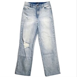 Fashion Nova Size 11 Wide Leg Mid Rise Jeans Light Blue Distressed