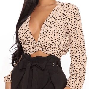Fashion Nova Small Little Lies Leopard Print Blouse Tie Waist