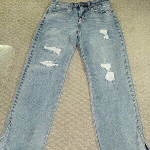Fashion Nova Straight Jeans Women's Size 26 Blue Mid Rise Distressed Split Hem