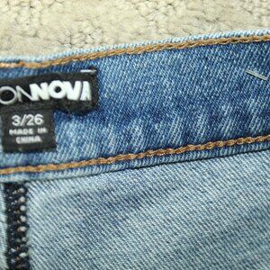 The Fashion Nova Straight Jeans in Women's Size 26 are a stylish addition to any wardrobe. These blue mid-rise jeans feature a distressed split hem, giving them a unique and edgy look. Made from a comfortable cotton blend denim, these regular fit jeans are machine washable and easy to care for. The solid pattern, zipper closure, and 5-pocket design make these jeans a practical and fashionable choice for any season. Perfect for casual wear, these Fashion Nova jeans are a versatile staple for any woman's closet.
