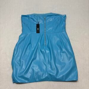 Blue Fashion Nova strapless mini faux leather strapless Bodycon ruched mini dress size 1X NWT
