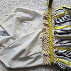 Stylish jumpsuit with off white and yellow stripes from fashion nova