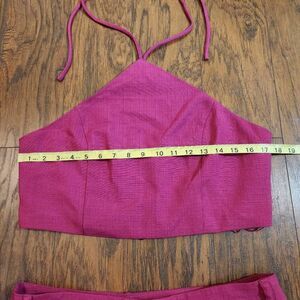 Fashion Nova two-piece halter suit in fuschia. Linen-look (polyester, Rayon, spandex). Size juniors xl or 15.