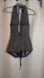 Fashion Nova Sweet Fatale Rhinestone Embellished Black Denim Romper. Denim Romper. Tie Halter. Deep V-Neck. Backless. Booty Short. Stretch. A couple stones missing, but not really noticeable. Size Medium.