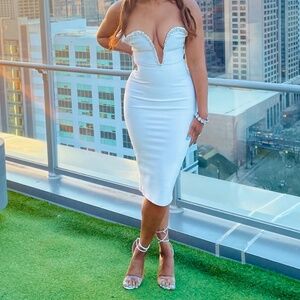 Fashion Nova Sweetest Heart Embellished Midi Dress - White MEDIUM