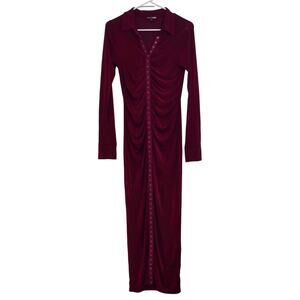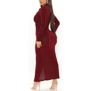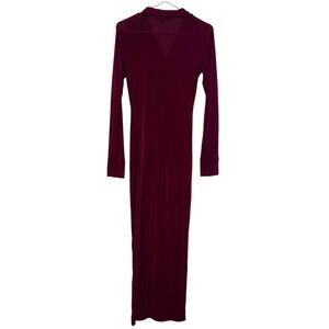 Fashion Nova Take Over Control Slinky Long Sleeve Bodycon Maxi Dress Wine Medium