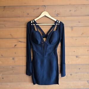 Super sexy stretchy, fitted dress with a bra like top and back clasp. Solid black, new with tags.