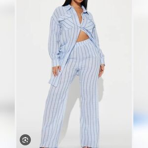Fashion Nova The Perfect Striped Pant Set Button-Up Shirt Size 3X.