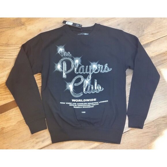 Fashion Nova The Players Club Crewneck Sweater Women Size Small Black Streetwear