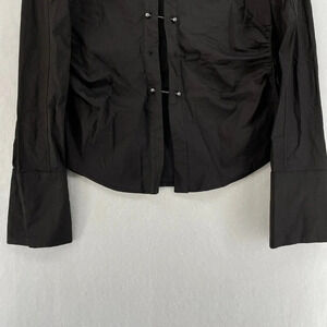 Fashion Nova Top Women's Sz M Black Collared Long Sleeve Toggle Front Side Zip