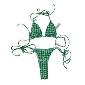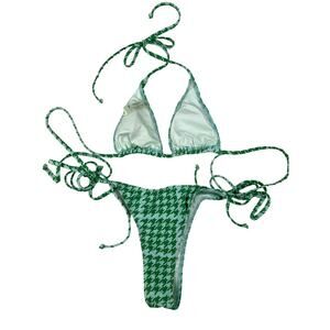 Fashion Nova - Triangle Halter Bikini Top & Tie Side Bottoms in Mint Green