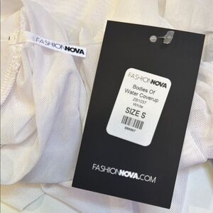 This Fashion Nova coverup is a chic addition to your swimwear collection, featuring a sleek bodycon fit that highlights your silhouette. The long cuffed sleeves and mock neck offer a sophisticated touch, making it perfect for a stylish day at the beach or poolside. Available in a classic white, this coverup ensures you stand out with elegance.