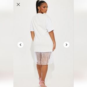 Fashion Nova White Fringe sequin T-Shirt Dress with Pink Graphic NWT