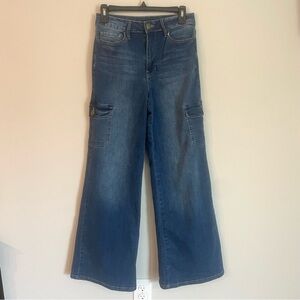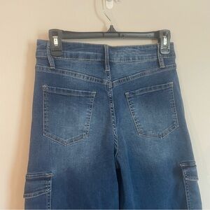 Fashion Nova Wide Leg Dark Wash Cargo Pocket Stretch Jeans Size 7