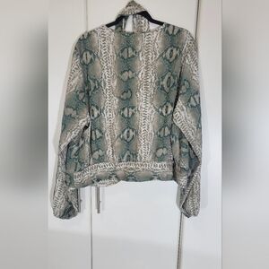 Fashion Nova Woman 3XL Reptile Print Wrap Tie Long Sleeve Blouse Top