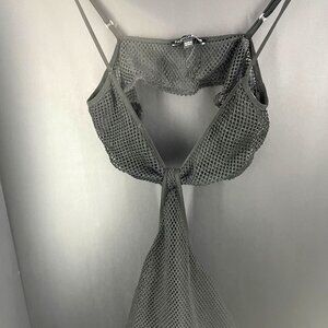 Fashion Nova Womens Black Fishnet Maxi Dress with Adjustable Straps Size S