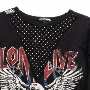 Fashion Nova Womens Black T Shirt Graphic Print Eagle and Guitar Short Sleeve 1X