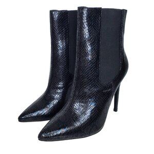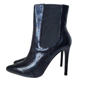 Fashion Nova Womens Booties Size 7 Pointed Toe Slip On Faux Snakeskin Black