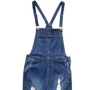 Fashion Nova Women's DIstressed Jean Bib Overalls Sz. M