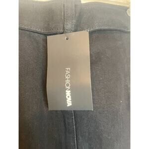 Fashion Nova Womens Front Zipper Denim Mini Skirt Belted Waist Size S Black
