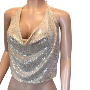 Fashion Nova Womens Gold Sequin Drape Cowl Neck Halter Cami Top Size 1X. Excellent condition. From smoke free home.