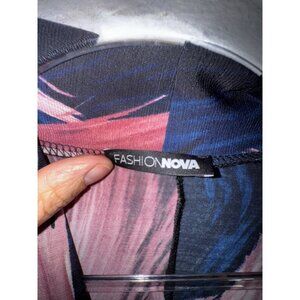 In the world of contemporary fashion, this Fashion Nova dress is a striking masterpiece. With its abstract print swirling in shades of pink and black, it beckons admiration. The bodycon fit accentuates the wearer’s silhouette, making it a captivating choice for those who seek to embrace bold elegance and flair.