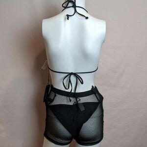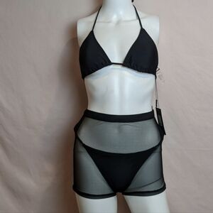 Fashion Nova Yacht Living Black Bikini and Mesh Shorts 4 Piece Set size Small