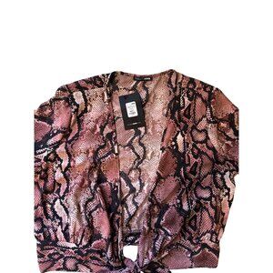 💖Fashion Nova, black and pink snake print long sleeve blouse