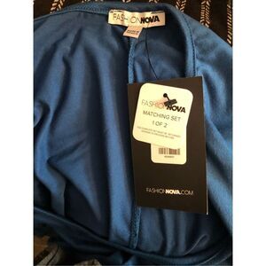 Fashion Nova blue long sleeve maxi cut to thigh and matching pants NWT XL
