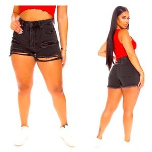 Super cute brand new Fashion Nova good days ripped cut off black jean shorts size 7- translate to a medium- measurements in pics. Non Stretch Cut Off Denim Short•5 Pocket• Distressed & Ripped- new only tried on. BoxJ22-89