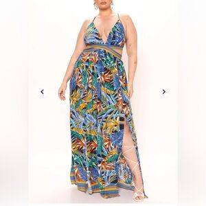 Fashion Nova lanai Tropical Print Maxi Dress women 1X vacation beach resort boho