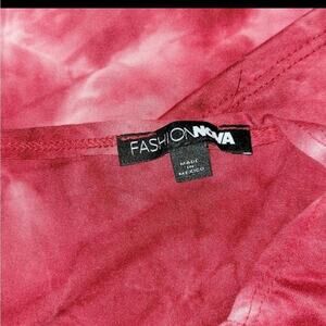 Fashion Nova off-the-shoulder red tie dye crew neck open twisted back size small