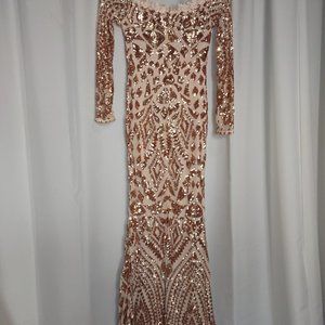 Fashion Nova pink sequined floor length dress size S