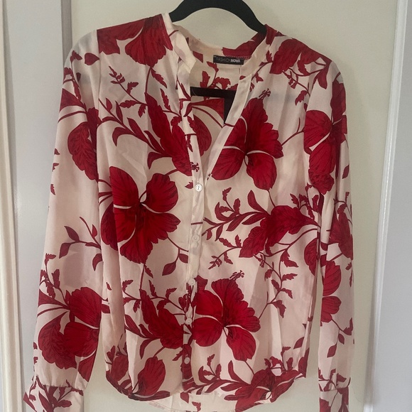 Fashion Nova red and white Floral Emotions top NWT. Never worn button down long sleeve top